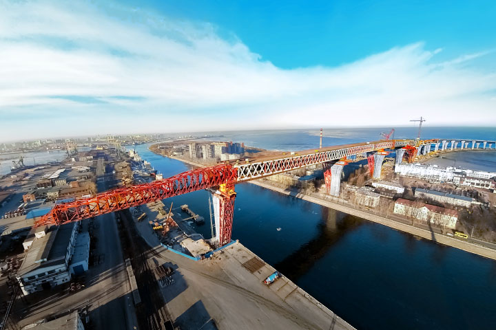 Двухъярусный мост через Морской канал в Санкт-Петербурге построен в составе центрального участка Западного скоростного диаметра (ЗСД). Максимальная высота опор — 52 м. Оголовки опор имеют сложную конфигурацию и большие габариты: высота 20 м, максимальная ширина 21,6 м. В теле опор запроектированы ревизионные шахты.